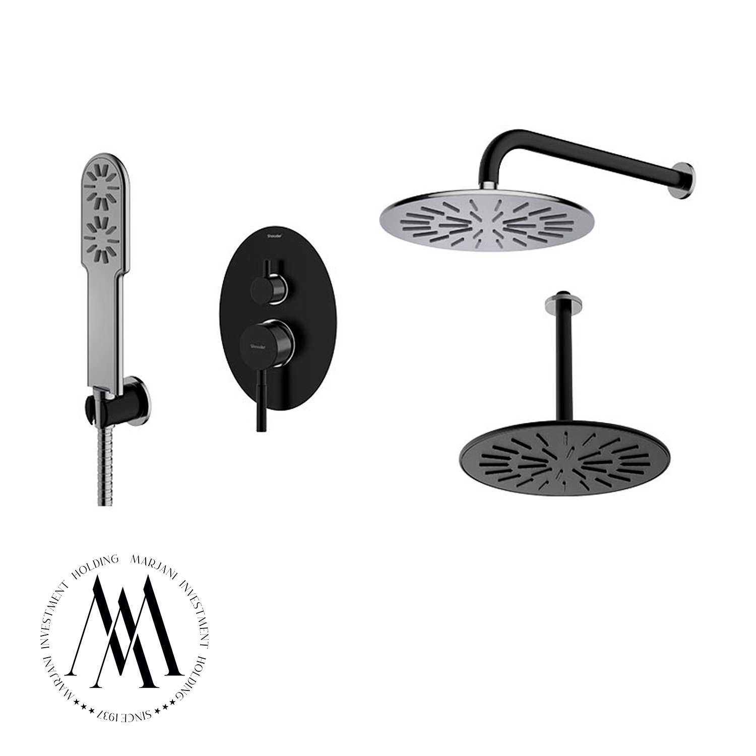 شیر حمام توکار شودر مدل روگن تیپ 3 (مشکی کروم)