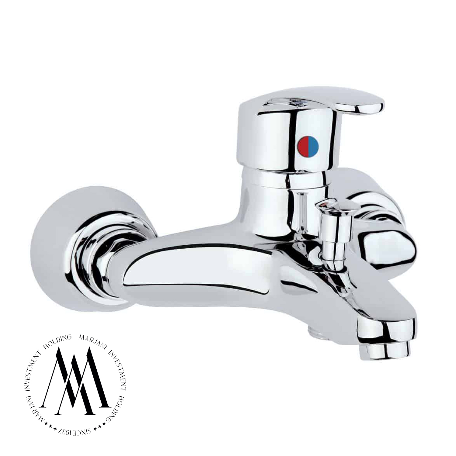 شیر حمام راسان مدل هلیا، رنگ کروم، وزن 1690 گرم، جنس از آلیاژ برنج، تعداد خروجی 2 عدد، تعداد دستگیره 1 عدد، جنس دستگیره از زاماک، آبدهی 7-11 لیتر بر دقیقه