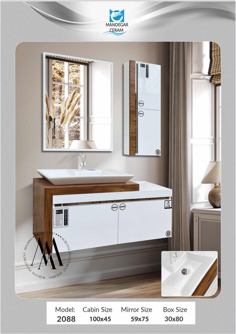 فول ست کابینت دستشویی ماندگار سرام کد 2088 (سفید طرح چوب)